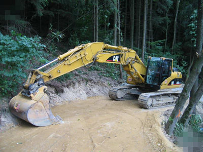 当挖掘机在转弯的时,其中一侧的履带行走、另一侧履带不动,出现大幅度的旋转运动,如果履带被地面上凸起的部分阻挡,就会卡到转动一侧的履带,履带很容易被拉伤。