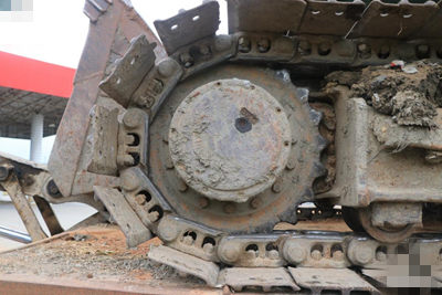 履带式挖掘机在工作或者移动时,会有一些碎石或者泥土进入到履带当中,如果在行走前部及时清除掉,碎石等会随着利率带转动而被挤压在驱动轮、引导轮和履带间,时间久了会使挖机履带松动,还会造成链轨断裂等现象。